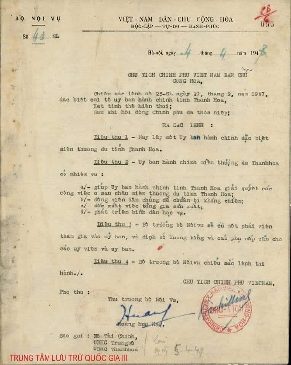 Sắc lệnh thành lập Uỷ ban hành chính đặc biệt miền thượng du tỉnh Thanh Hoá